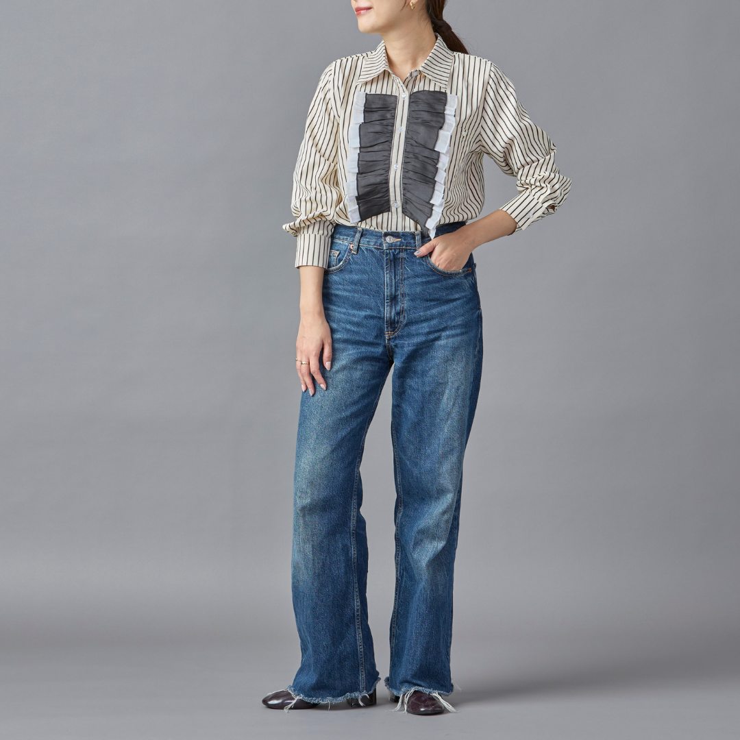 ■フロントの大胆フリルがなびくストライプシャツが登場!