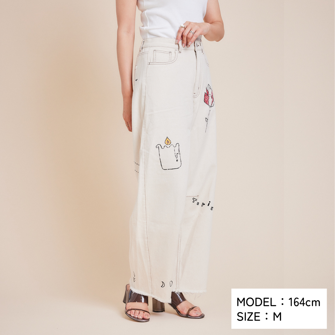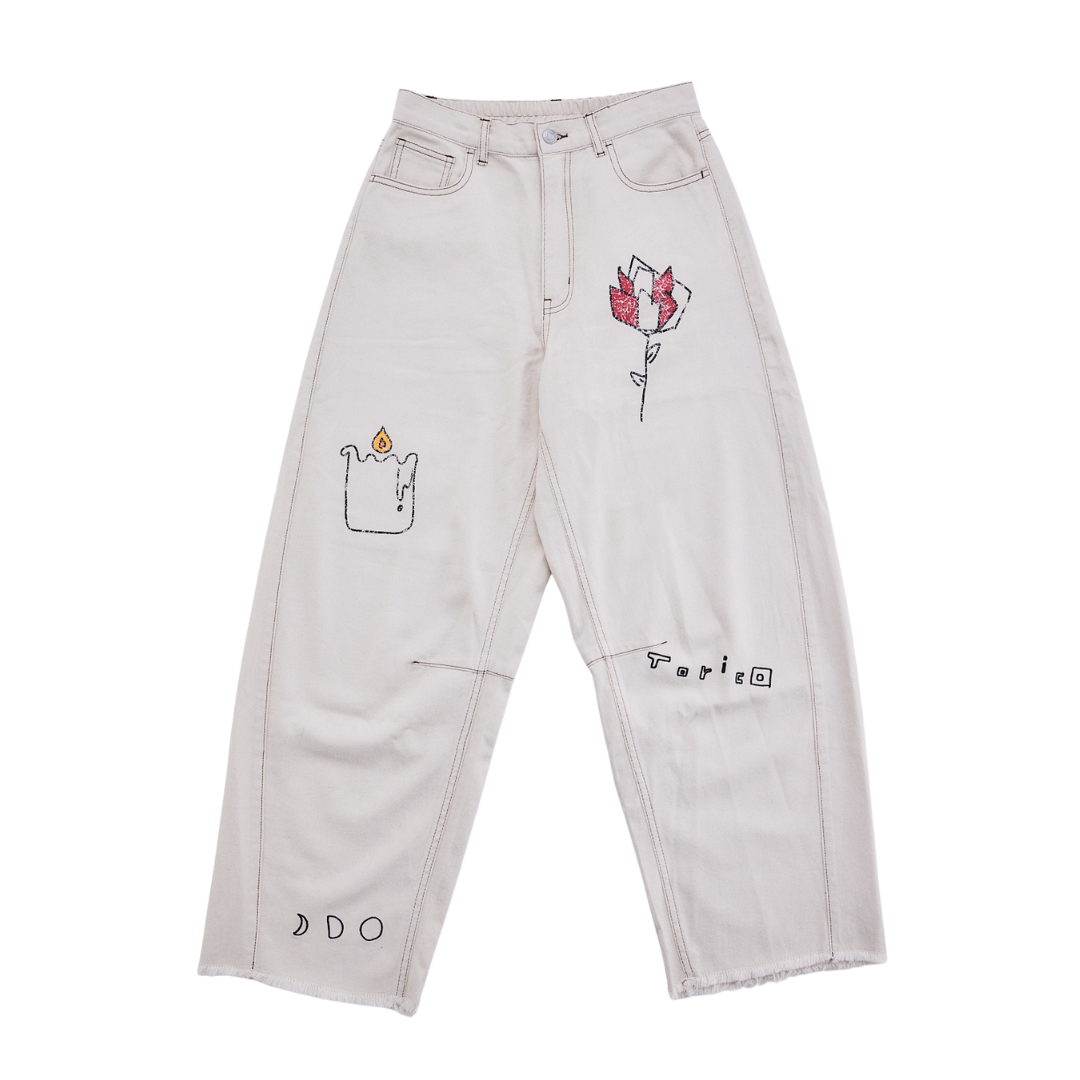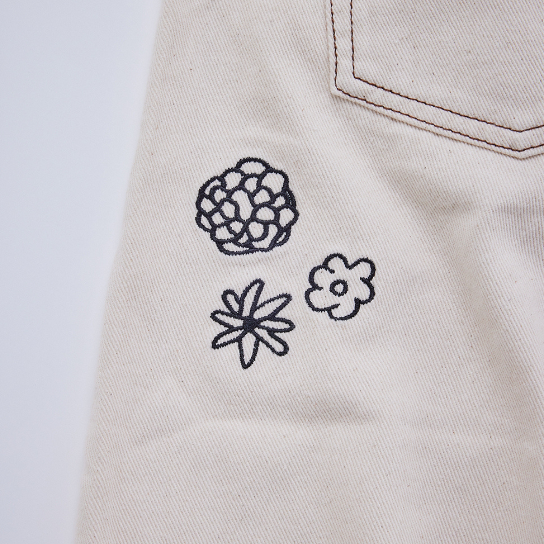 アイボリーのボディに浮かぶのは、花や月などのラフなグラフィック。