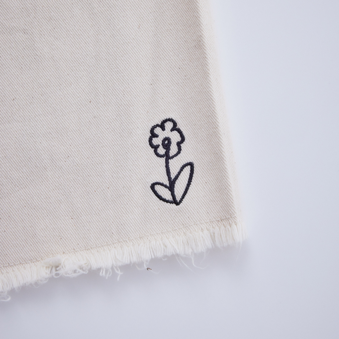 生成りカラーのナチュラルなコットン素材で、素朴さと温かみのある風合いが魅力。通年着用でき、肌触りも心地いい。