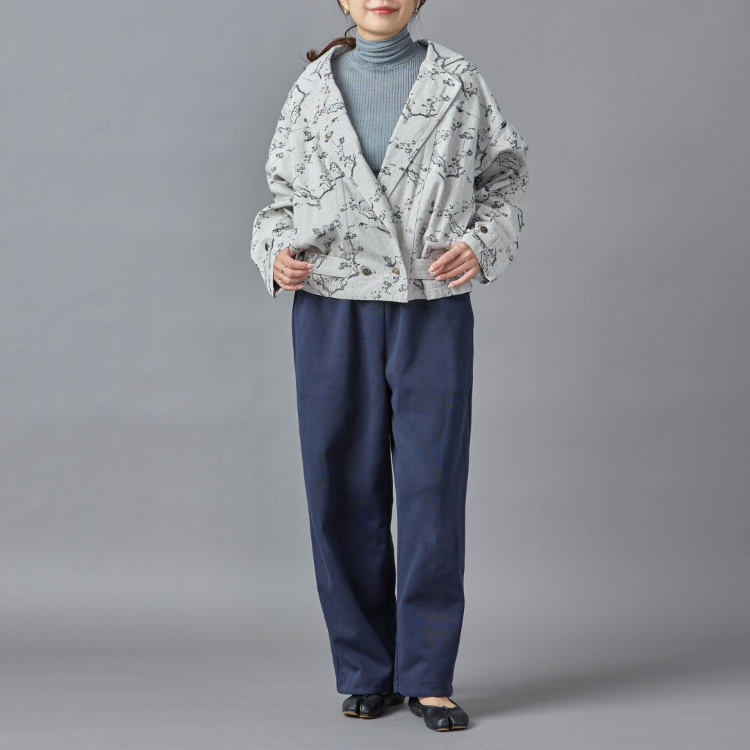 肩まわりにゆとりを持たせたオーバーシルエットで、中に厚手のトップスを重ねてもごわつきにくいのもポイント。