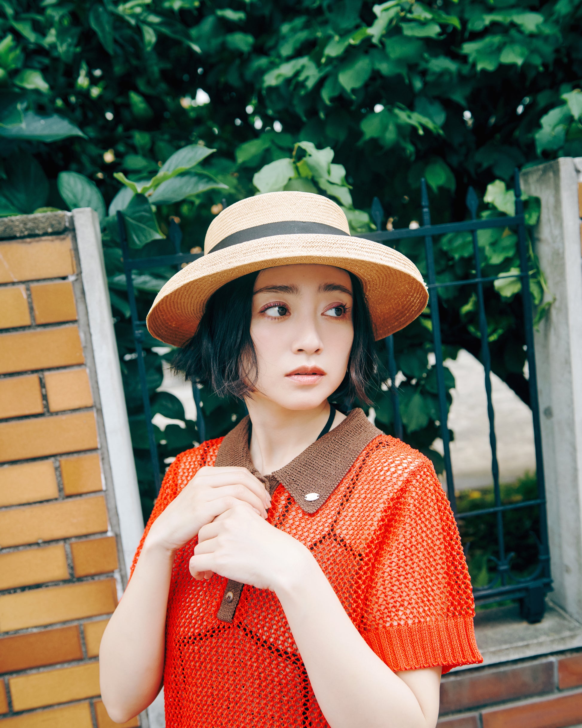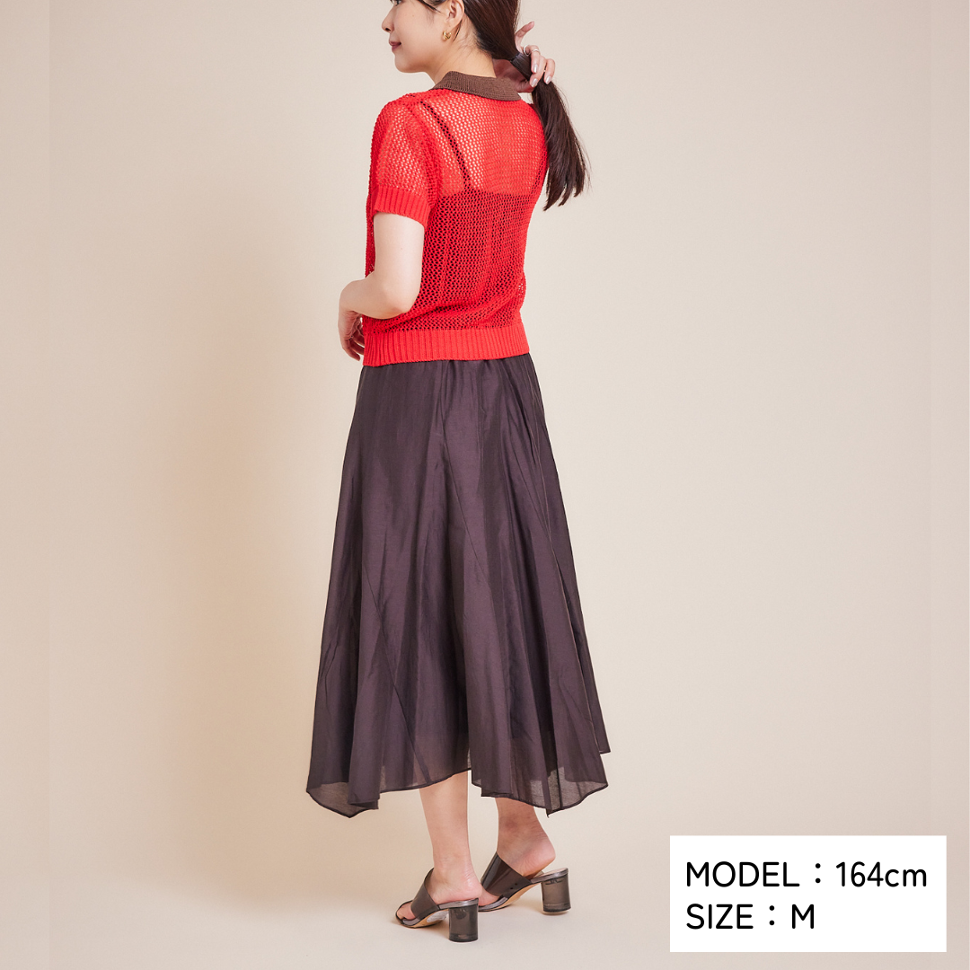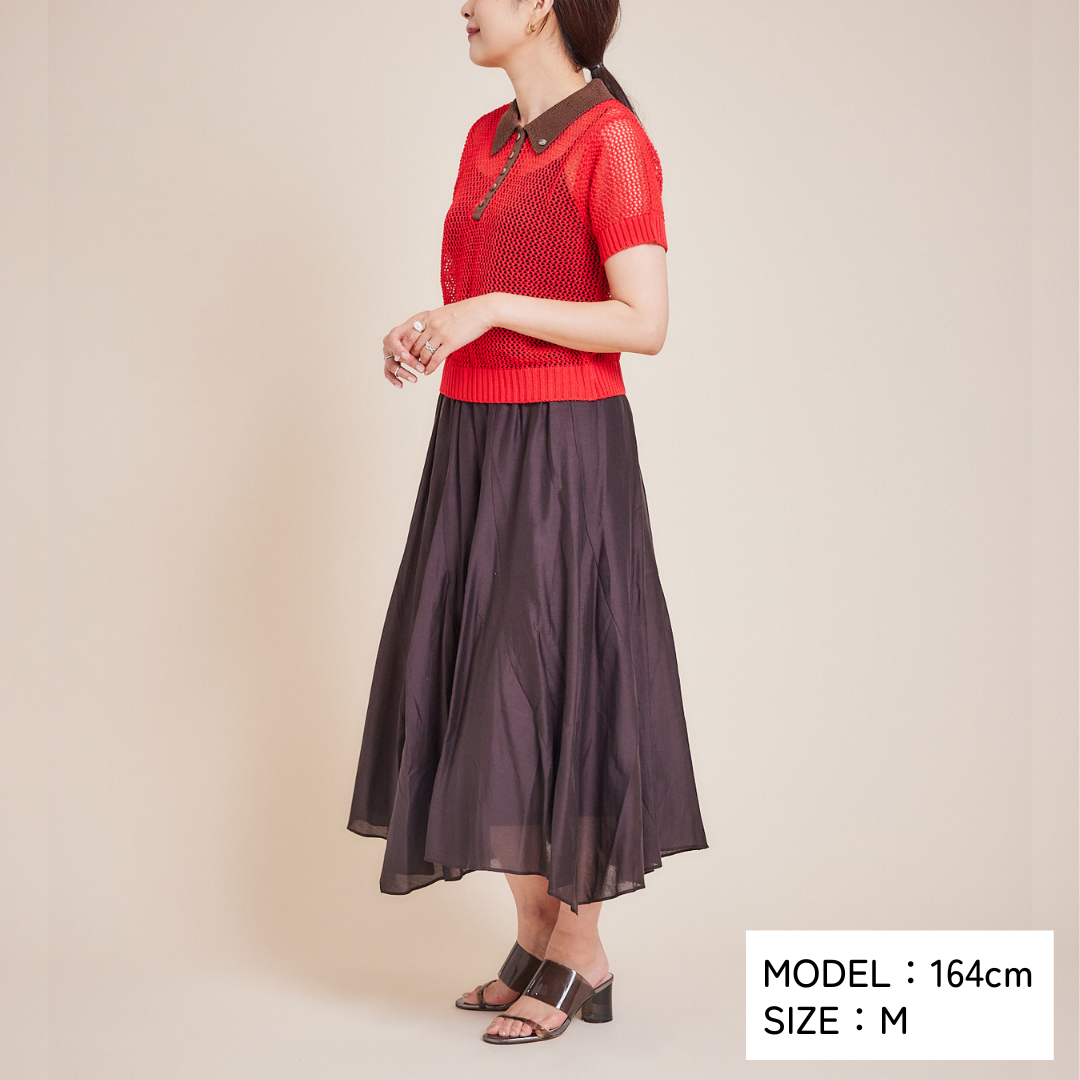 ざっくりとした編み目から見えるインナーでさらに色遊びをするのも◎。