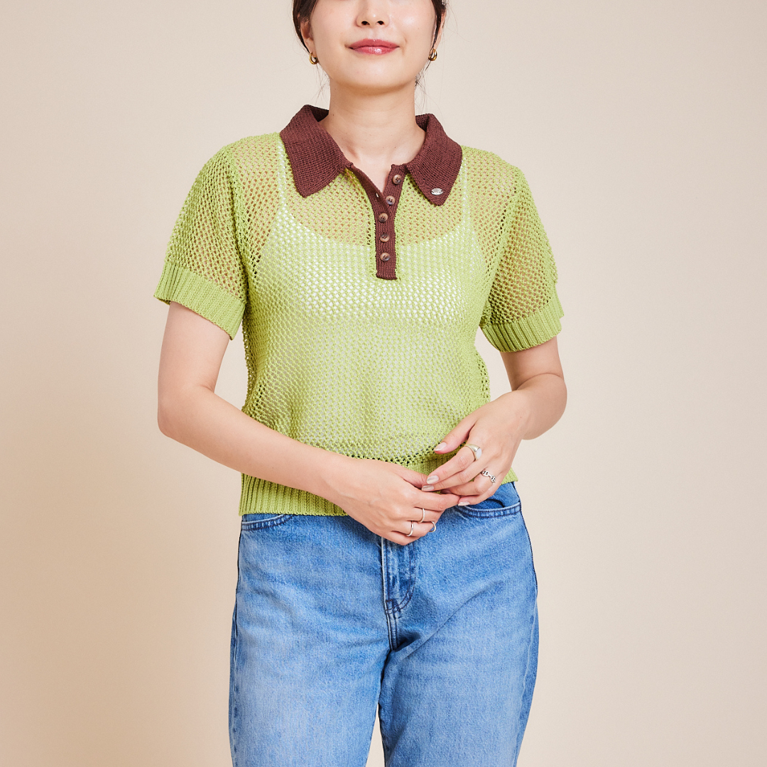 ■透かし編みで涼しげなニットポロシャツが登場!