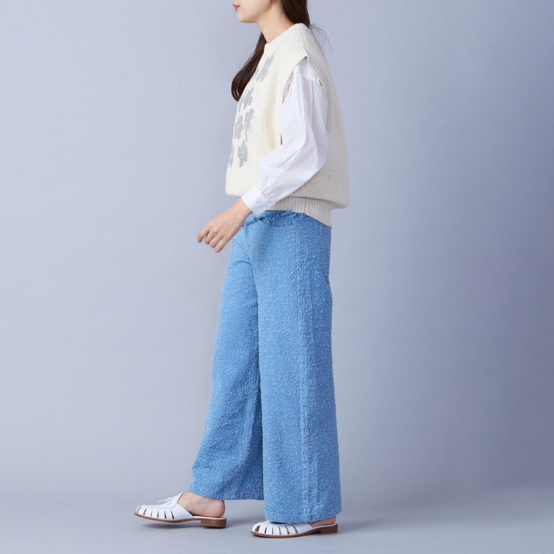 ふんわり編み上げた、通年使えるアクリルコットン素材なので、さらりと心地よく着ることができます。