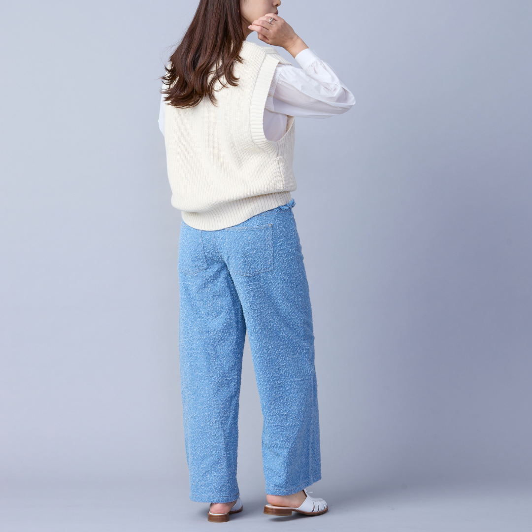 アームホールは大きめに仕上げ、さまざまなアイテムとの重ね着も◎。
