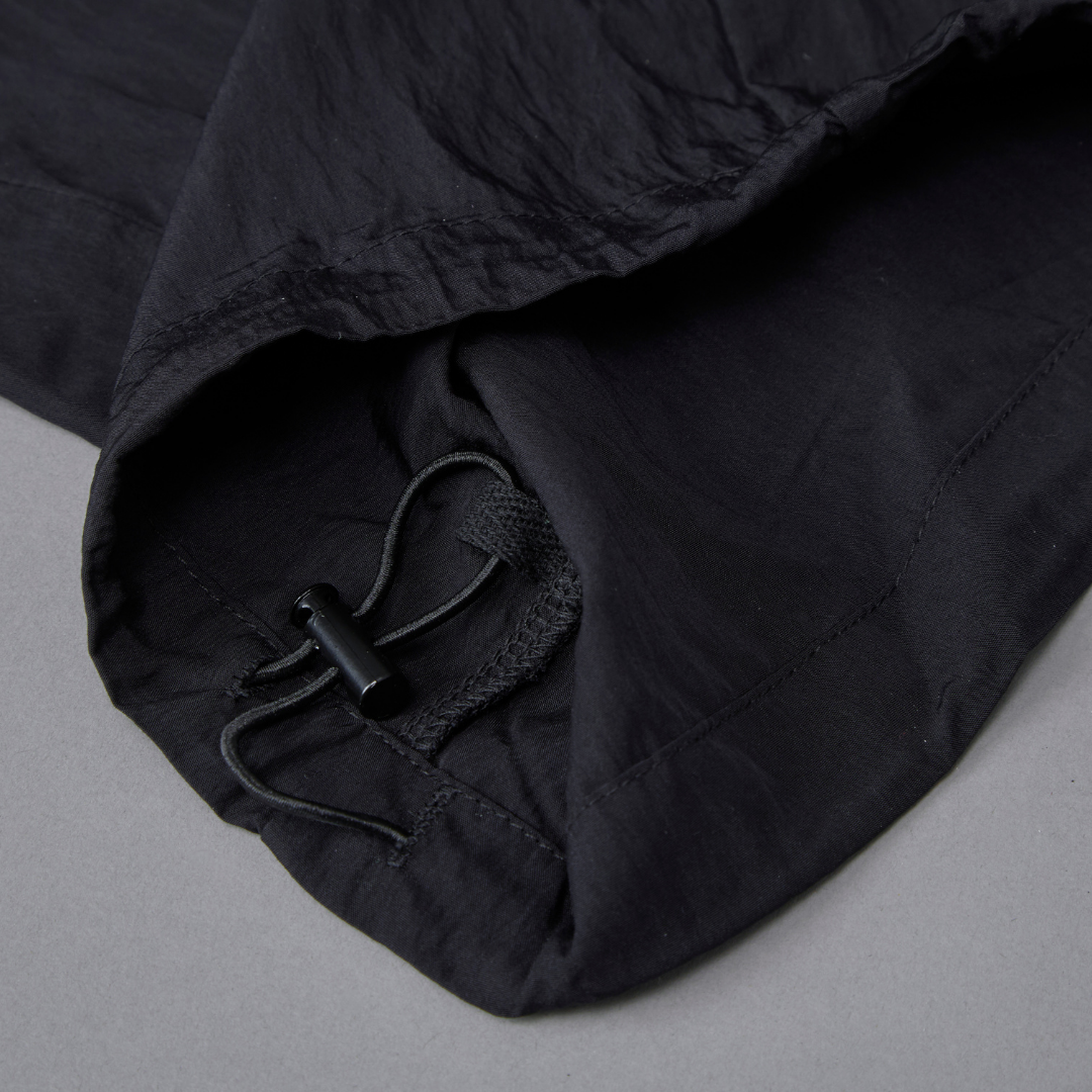 腰まわりの透け感のあるチュールが軽やかに揺れ、ベーシックな黒のイージーパンツに華やかさをプラスしました。