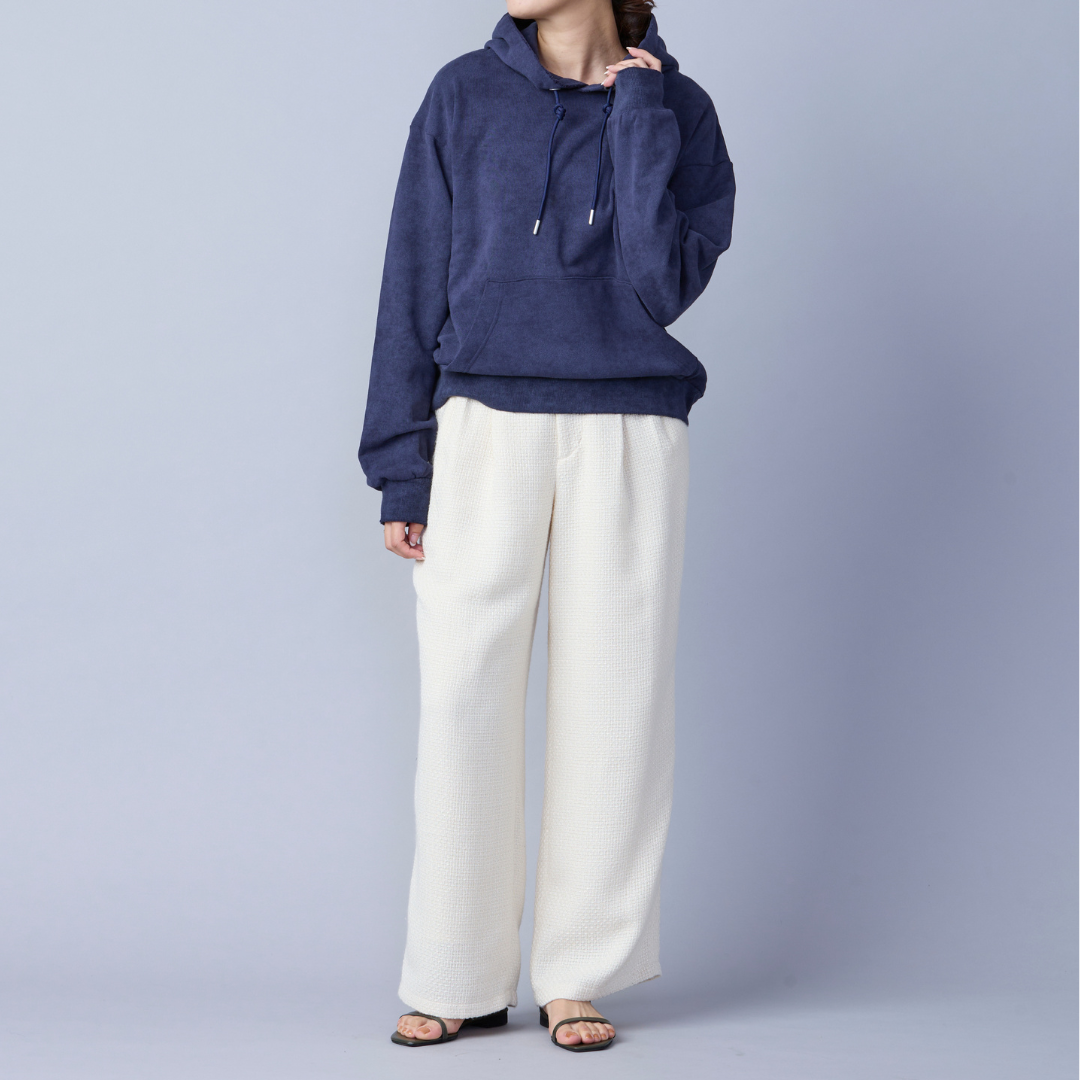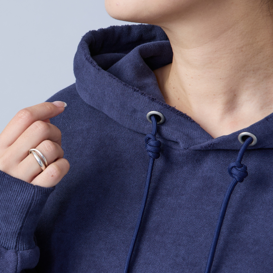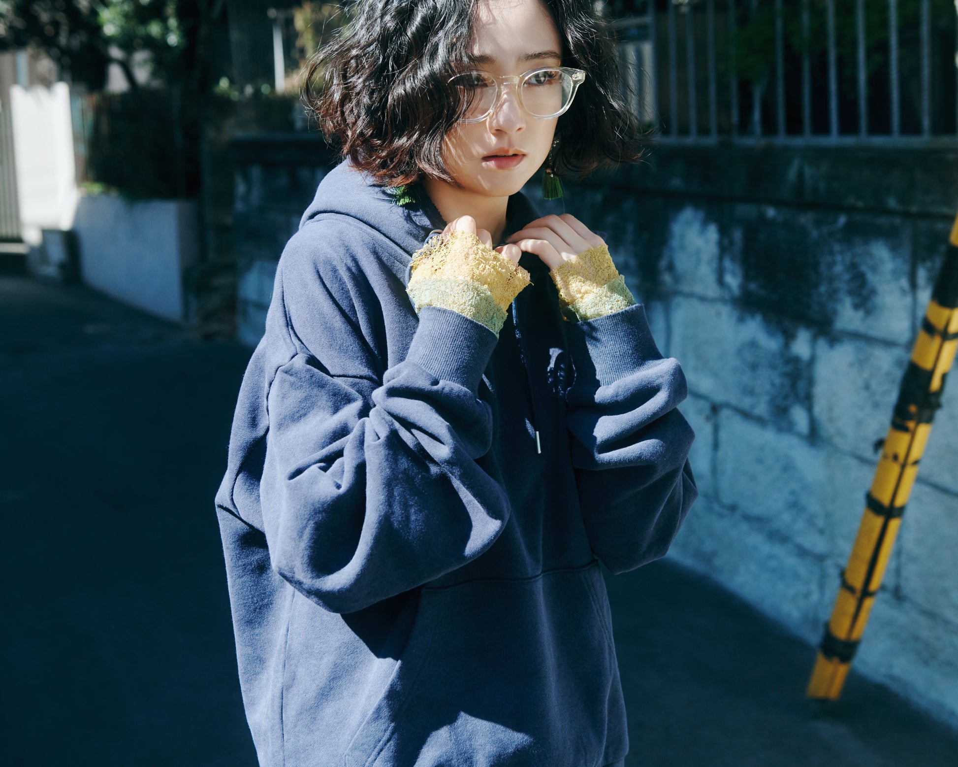 Washed Rough Silhouette Hoodieは、安達祐実が特に“袖や裾のふくらみ”などディテールにこだわりを持って仕上げました。軽く薄手な素材ですが、ゆったりシルエットで立体感◎。