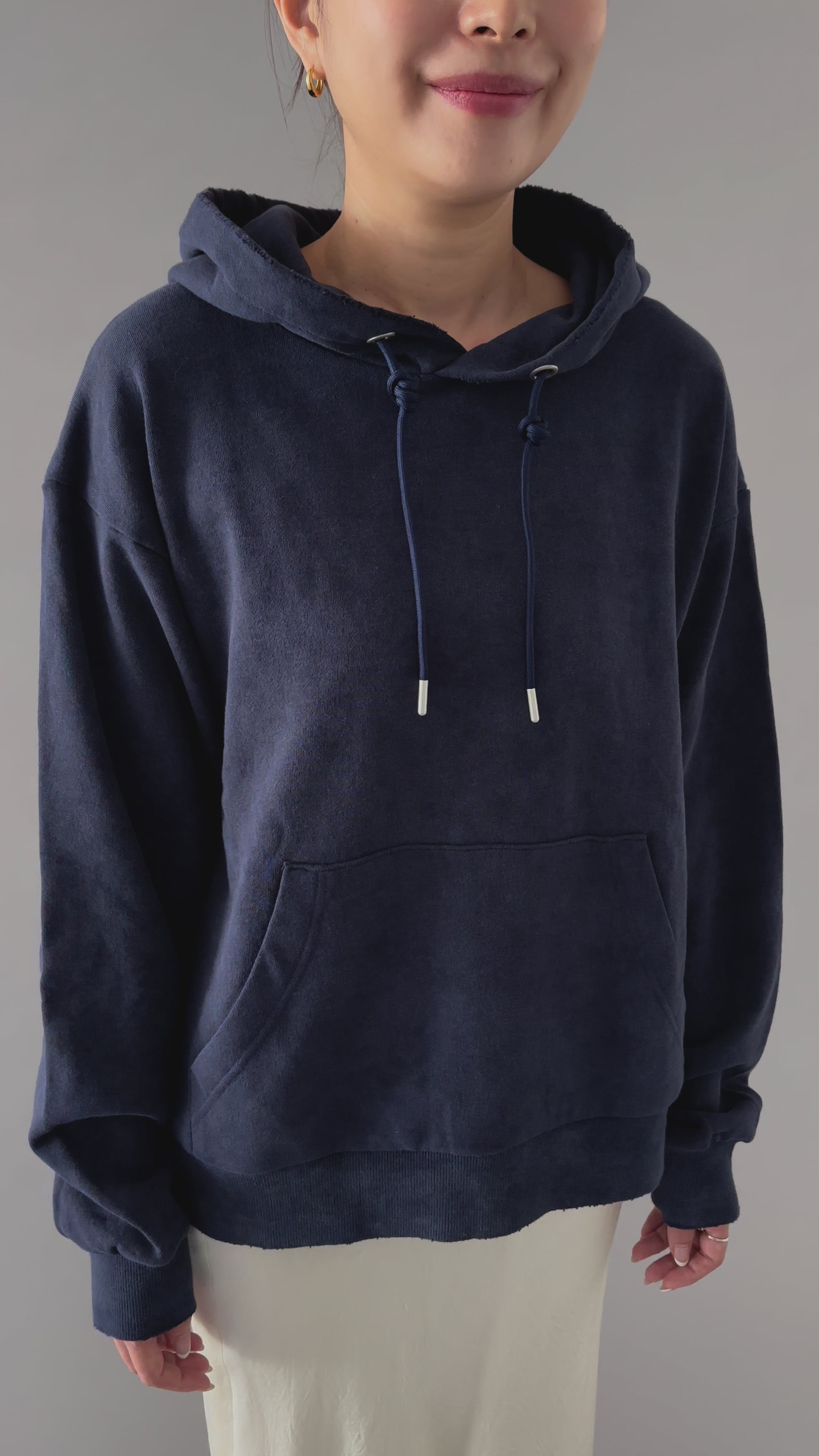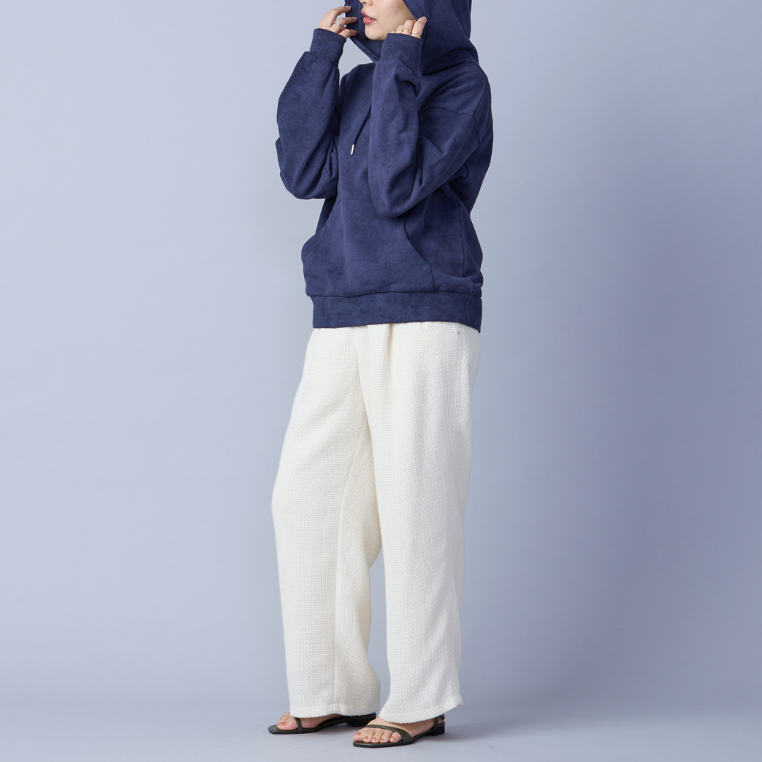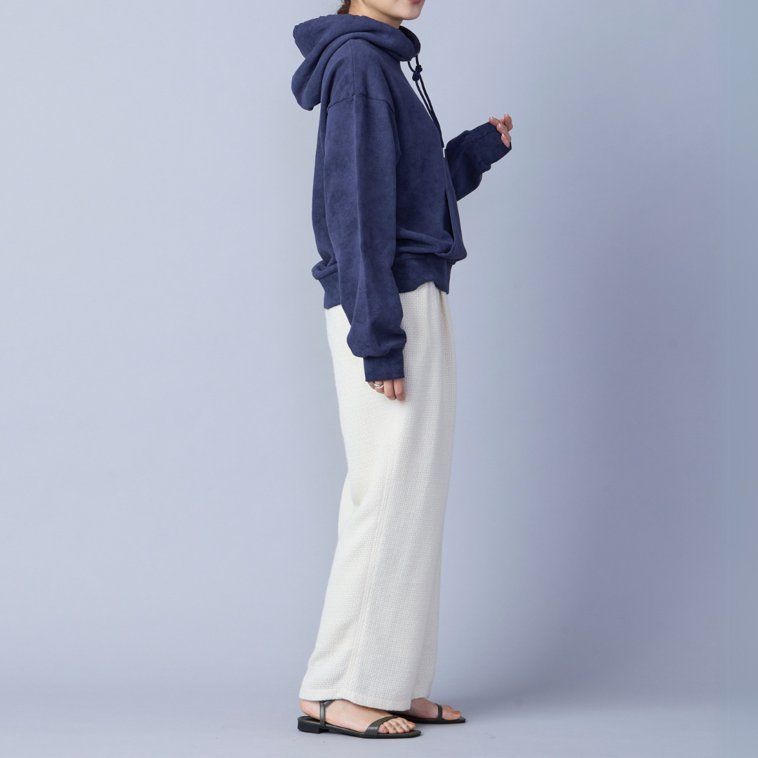 Washed Rough Silhouette Hoodieは、安達祐実が特に“袖や裾のふくらみ”などディテールにこだわりを持って仕上げました。軽く薄手な素材ですが、ゆったりシルエットで立体感◎。